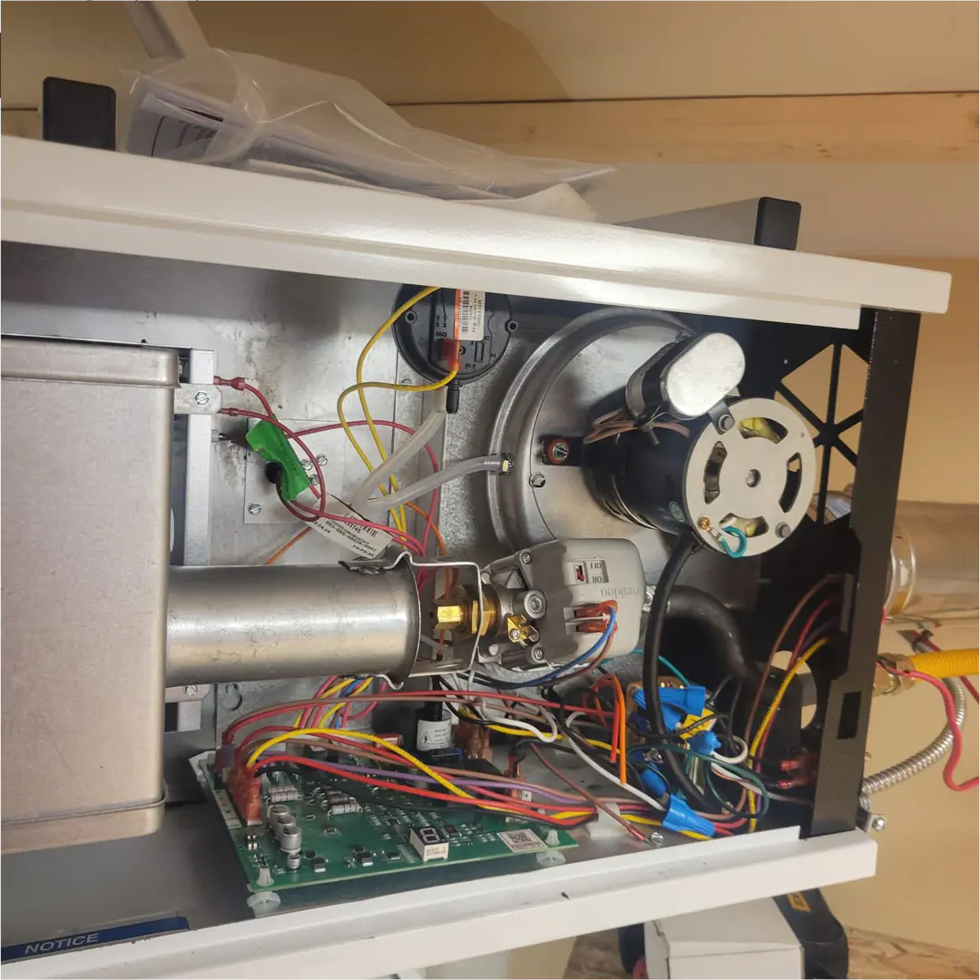 Forced air heaters operate exactly like a furnace and blow the warmed air around the garage. They heat a garage evenly and todays units are very quiet. The advantages to a forced air heater is they heat the garage just like your home so the garage really becomes a usable room 365 days a year.