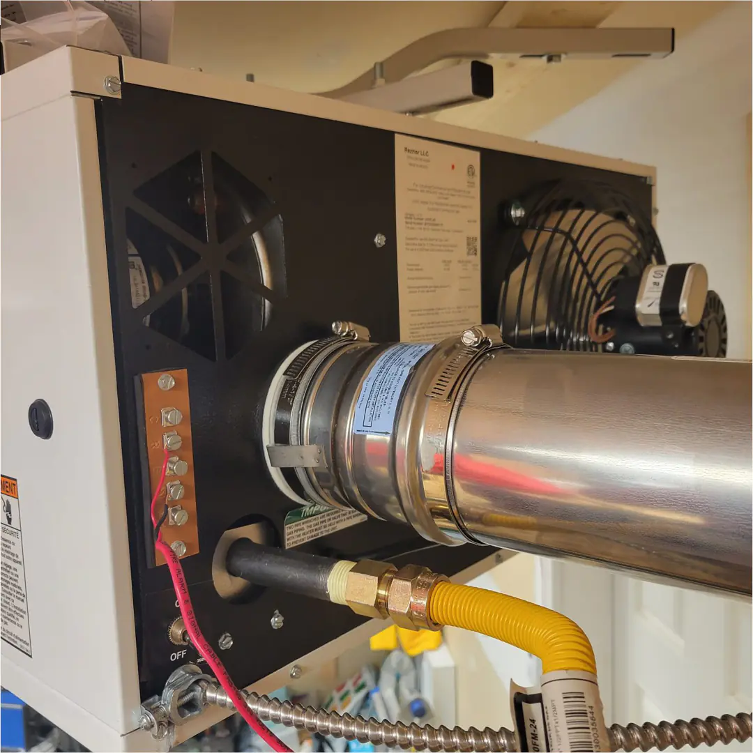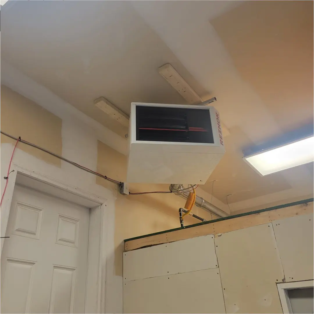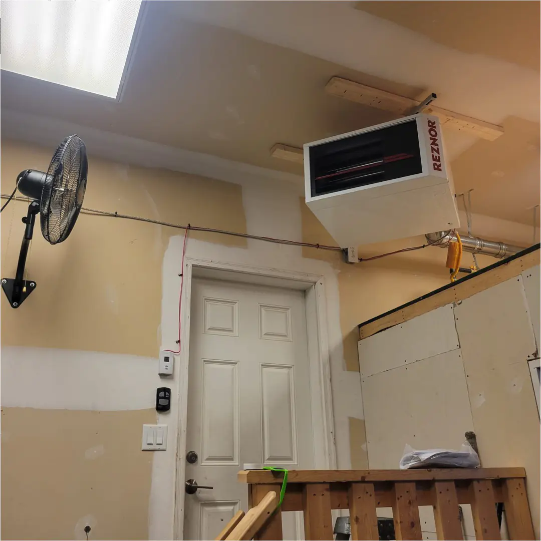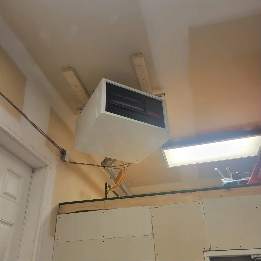 There are disadvantages to forced air units as well, the most significant being operational costs. A forced air unit will typically cost 30% more than a radiant unit to operate. Warm are stratifies and rises to the ceiling area and when the garage door is open rushes out. This means that even if you only open the garage door for a few minutes the heater has to entirely reheat the garage when the door closes again. Unlike radiant heaters though the effectiveness of a forced air unit is not nearly as reliant on its location in the garage so if installation flexibility is important to you , they should be considered.