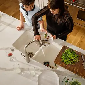 InSinkErator® garbage disposers are designed to grind tough food waste, helping reduce particles left behind that can cause sink odour. Our Heavy Duty Dura‑Drive® induction motors feature jam‑busting torque for grinding power and durability. Additionally, our innovative design keeps food scraps in the 3D Grind Zone and directs water to rinse the chamber walls clean, for a fresh sink.