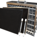 Electrostatic Precipitator Collection CellThe electrostatic cell captures airborne particles down to 0.01 microns in size. It contains an ionizing section where a strong electric field charges billions of microscopic particles as they pass through it. The charged contaminants are then drawn through collector plates that immediately attract and remove them from the air stream. -